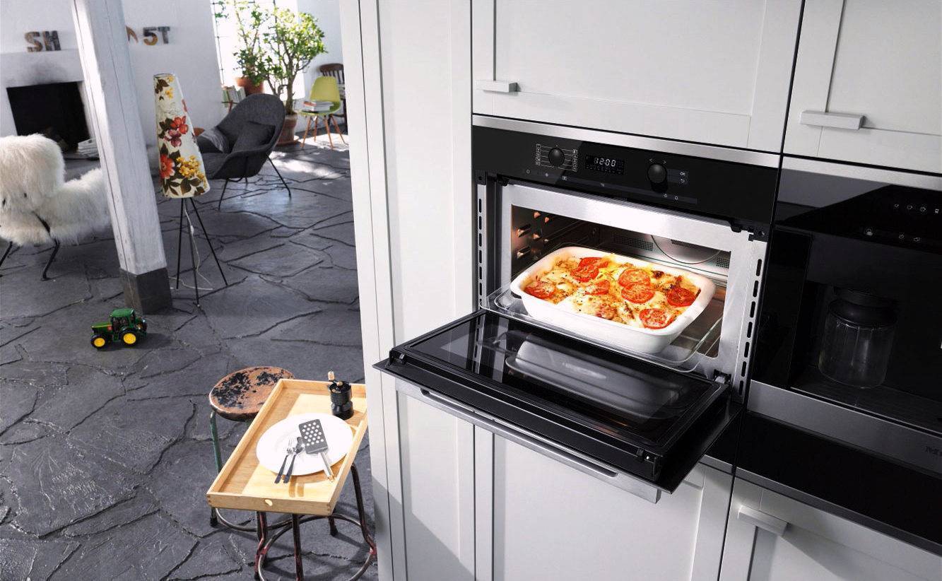 Духовка заставляет выбрать именно её в первую очередь благодаря невероятному дизайну. Это встроенный духовой шкаф с множеством функций, вместительный (60 л) и с большой скоростью нагрева. Кроме того, есть 30 программ, что существенно упрощает ежедневный ритуал хозяек. Просто выбирайте блюдо и жмите «пуск». Также есть блокировка от детей, самоочистка.