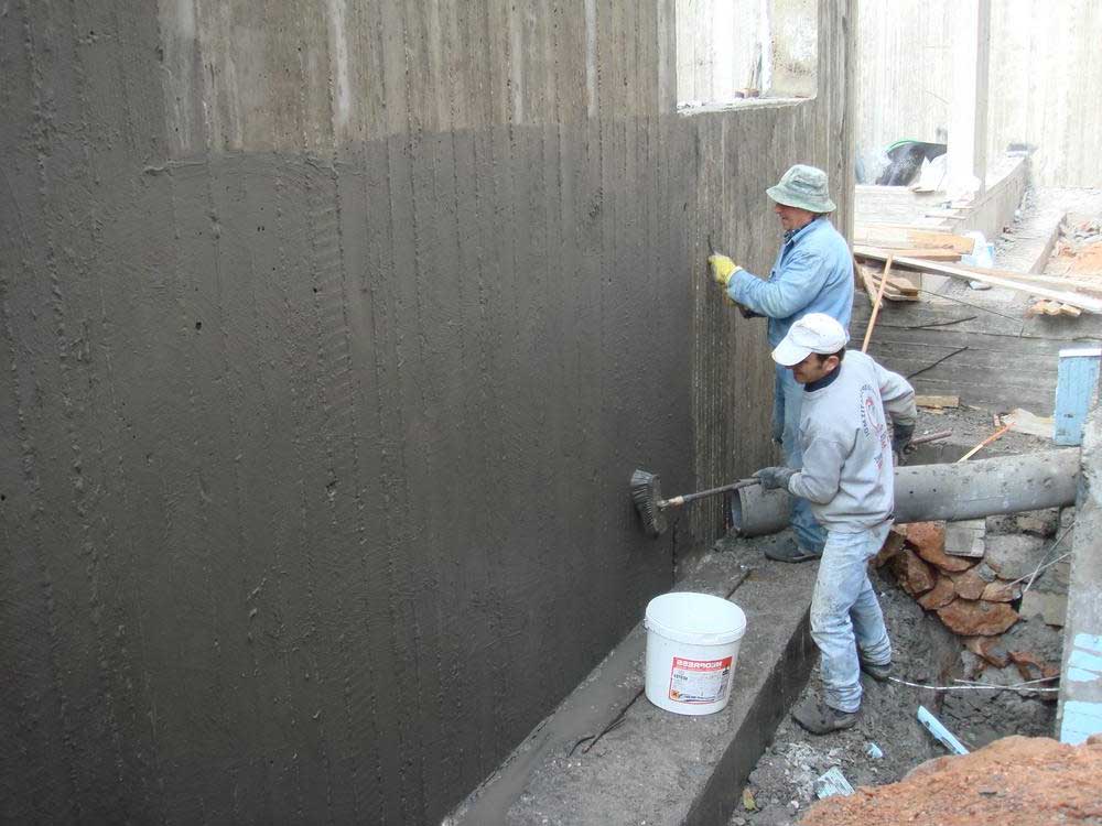 - После высыхания поверхности покрывают слоем гидроизоляции. Всего потребуется несколько слоев.
