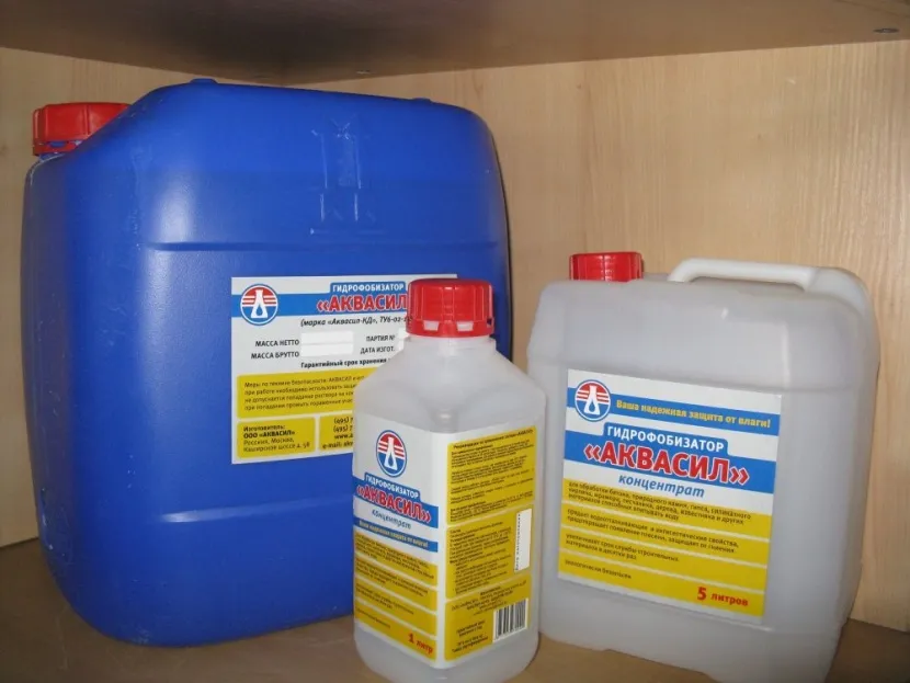 Первая группа (алкилсиликонаты калия) обладает наихудшими эксплуатационными показателями, но зато и стоят такие составы дешевле всего, а кроме того, только они способны растворяться в воде. Поэтому на их основе готовят водные растворы, предназначенные для внутренних работ (в помещениях с высокой влажностью) или для объемной гидрофобизации.