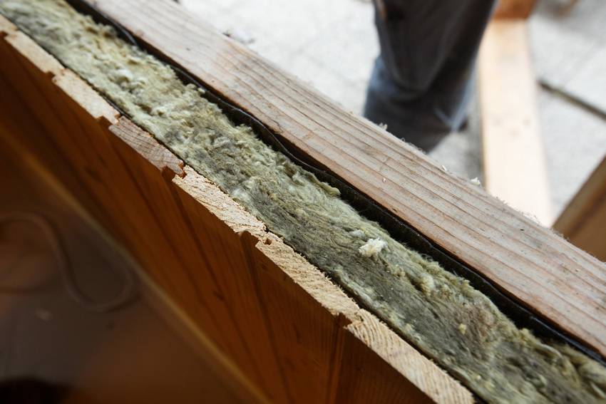 Минеральную вату плотно укладывают между элементами каркаса, а для дополнительной фиксации используют шурупы с широкими шляпками и гвозди.