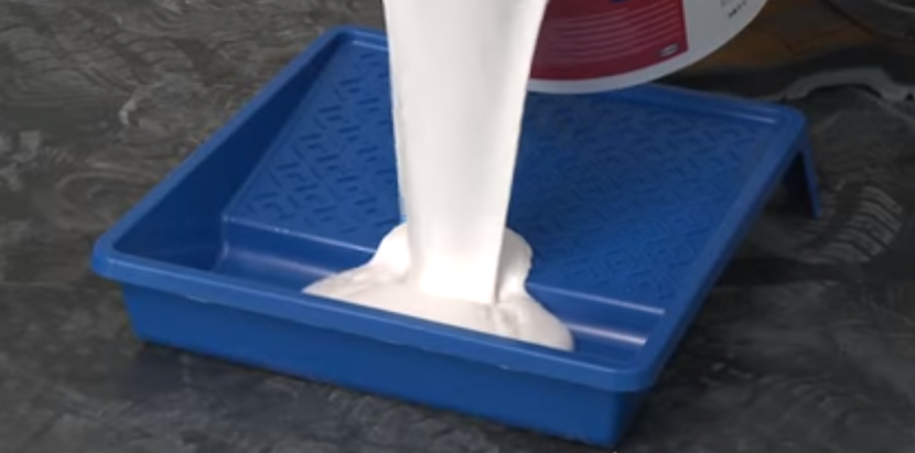 Шаг 1. Перед применением грунт в емкости хорошенько перемешивают для равномерного распределения компонентов. Наливают небольшое количество в пластиковый поддон.