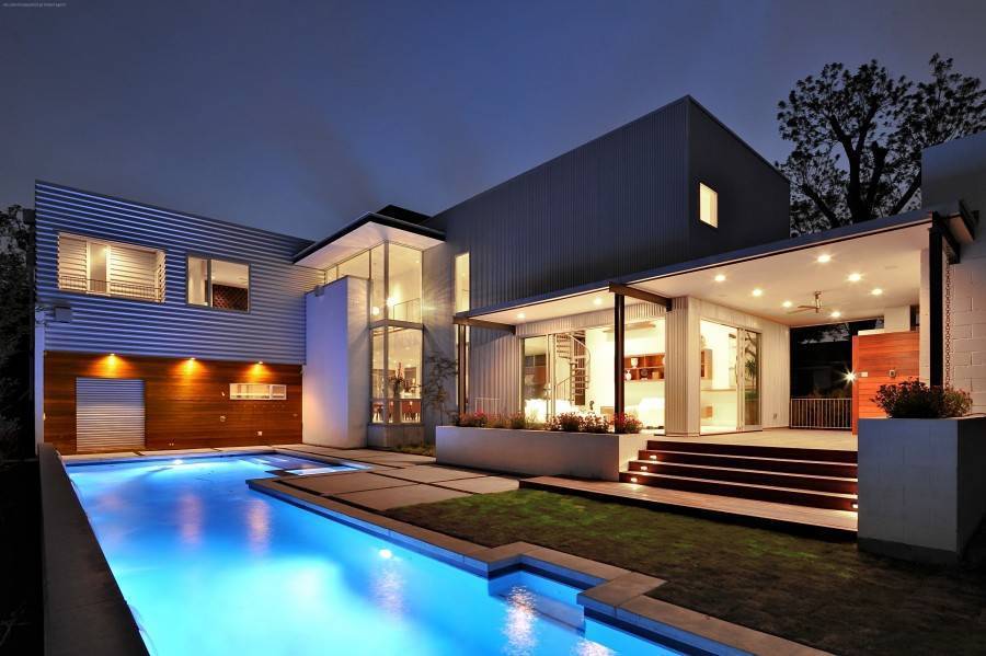 Чаще всего в такие дома включается система «умный дом», которая позволяет управлять жилищем, к примеру, закрывать шторы на всех окнах сразу. Фасад современных домов непременно удивляет своей уникальной, формой, огромными окнами, необычными пропорциями.