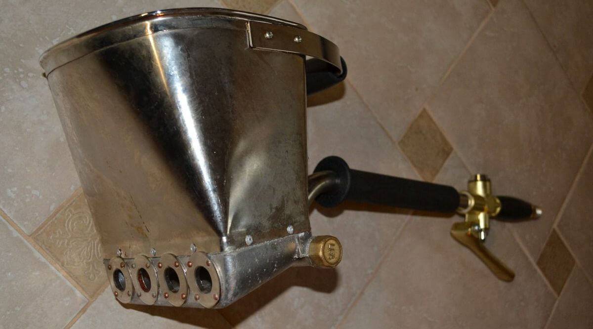 Чтобы добиться нужного размера «пупырышек», можно изменить диаметр сопла, густоту смеси, диаметр отверстия в передней стенке пневмоковша, расстояние до поверхности, на которую наносится штукатурка. Поэкспериментировав некоторое время, вы освоите ковш для штукатурки.