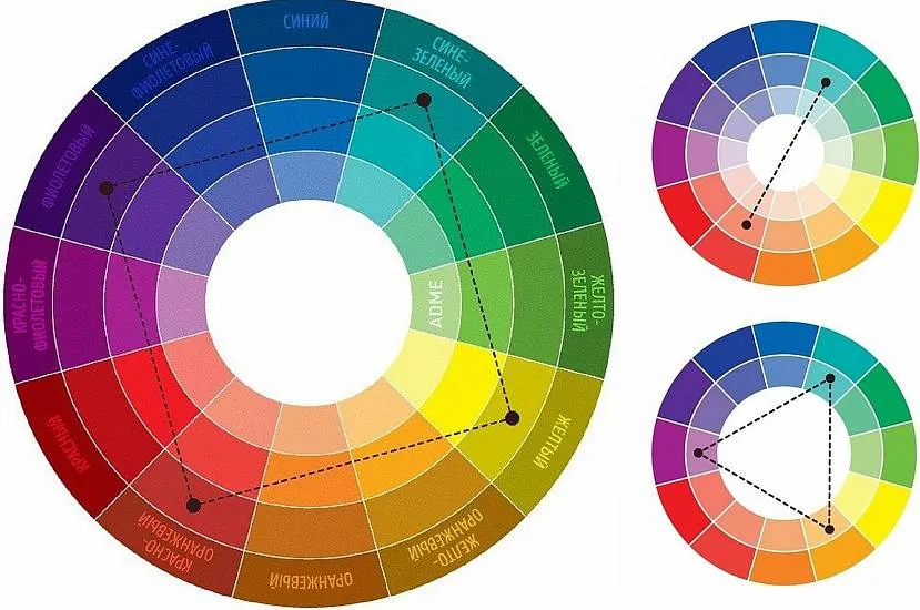 Совместное использование различных цветов строится по нескольким основным схемам.