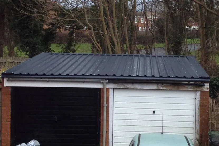 Некоторые гаражи, как правило, это отдельно стоящие строения, имеют жесткую кровлю из металлочерепицы или профнастила. Починить такую крышу не составит труда, ведь заменить поврежденный лист не сложно, хотя бывают и такие ситуации, когда, например, на гараж упало дерево или метеорит (шутка!). Тогда вам придется настелить профнастил заново, причем, возможно, вместе с обрешеткой.