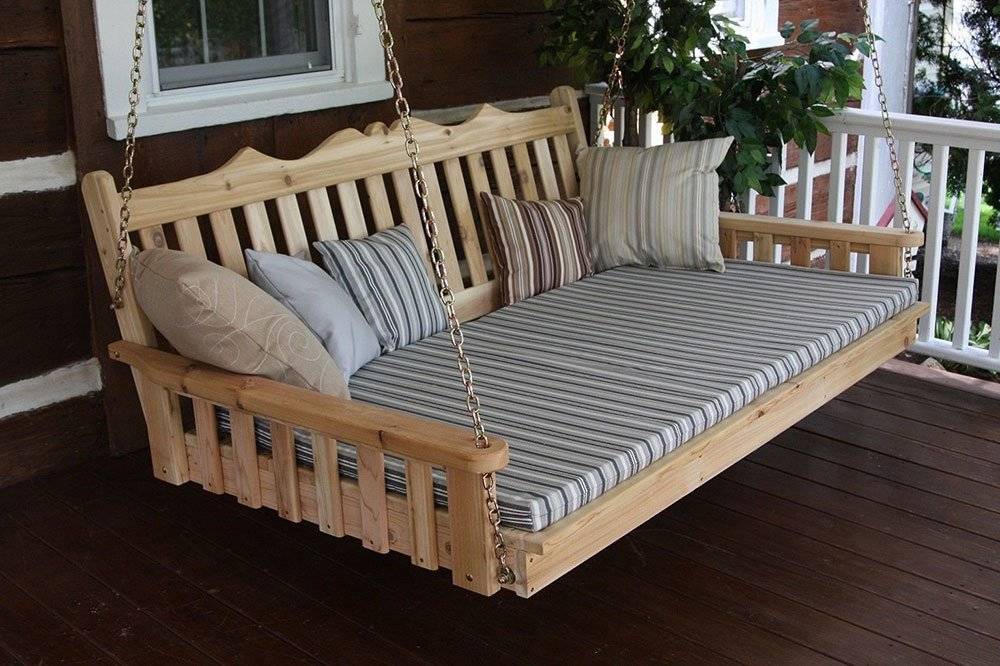 Ну, а теперь материал для тех, кто не может или не хочет покупать садовые качели, но все же не прочь установить такой подвесной диван на своей даче. Мы предлагаем изготовить их самостоятельно, притом из дерева. Металл – он, конечно, понадежнее, но требует от мастера немало опыта и массу недешёвого инструмента.