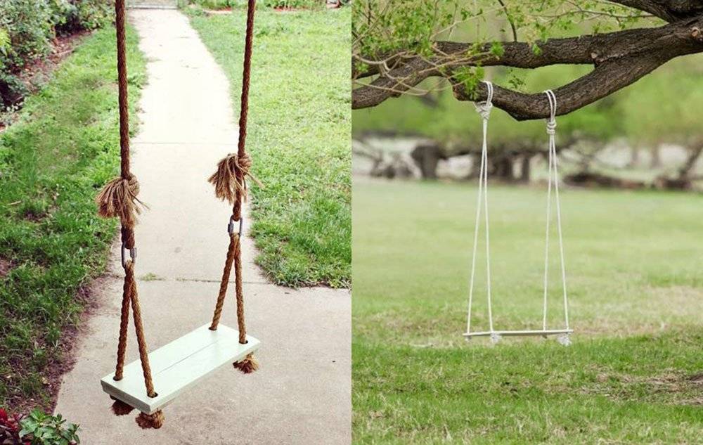 Самый простой вид садовых качелей, это их монтаж на ветке дерева. Если в саду на дачном участке есть достаточно взрослое дерево, ветка которого может служить для крепления веревки, вопрос об их устройстве решается просто: