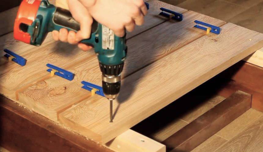 Перед креплением винтами или мебельными болтами, необходимо просверлить в доске отверстие, на 1 миллиметр меньше по диаметру, чем резьба метиза. Это действие не позволит разрушить материал доски. Винты и болты для мебели применяются из оцинкованного металла.