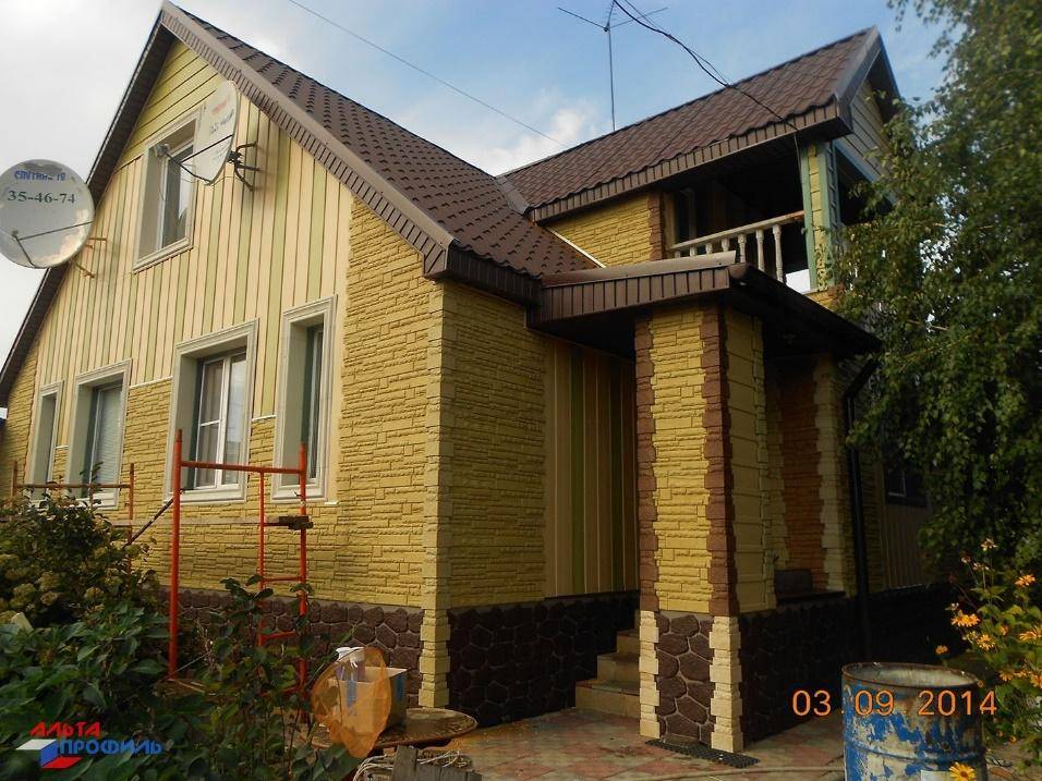 Пример такой отделки дома сайдингом и фасадными панелями можно посмотреть на фото.