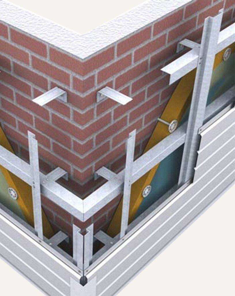 - По краям стены крепятся металлические профили, которые с помощью уровня выравниваются во всех плоскостях.