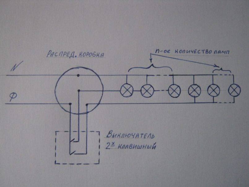 Как устроена нормальная схема подключения люстры, например двух или трехрожковой? Есть фаза, которая приходит в соединительную коробку.