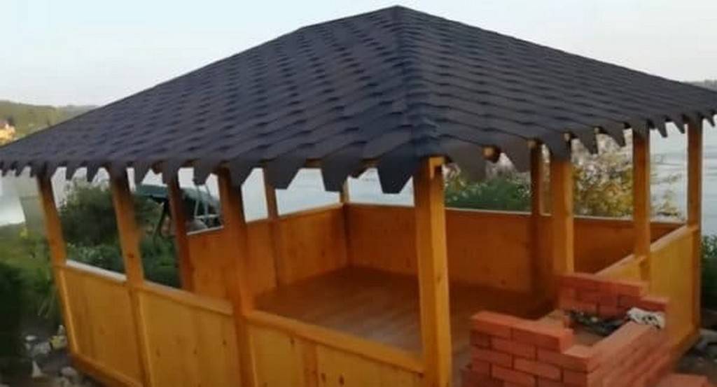 Все вышеописанные методы подойдут в случае, если вы делаете простую беседку своими руками (до 30-40 квадратных метров). Более тяжелые конструкции (в том числе с многоуровневыми крышами) устанавливаются только на ленточные и глубокие столбчатые фундаменты, поскольку масса сооружения может деформировать кирпичную кладку, блоки или некачественно сделанный бетон. В некоторых случаях (например, двухэтажные беседки) потребуется даже армирование ленточного фундамента и водоотводы.