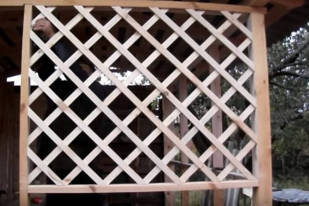 Очень красиво будет смотреться садовая беседка, со стенками в виде решетки из реек на оконных проемах. Их тоже можно сделать своими руками с помощью пошаговой инструкции. Это будет смотреться мило и уютно. Для решетки можно использовать рейки. Идеальный размер 18 на 35 мм.