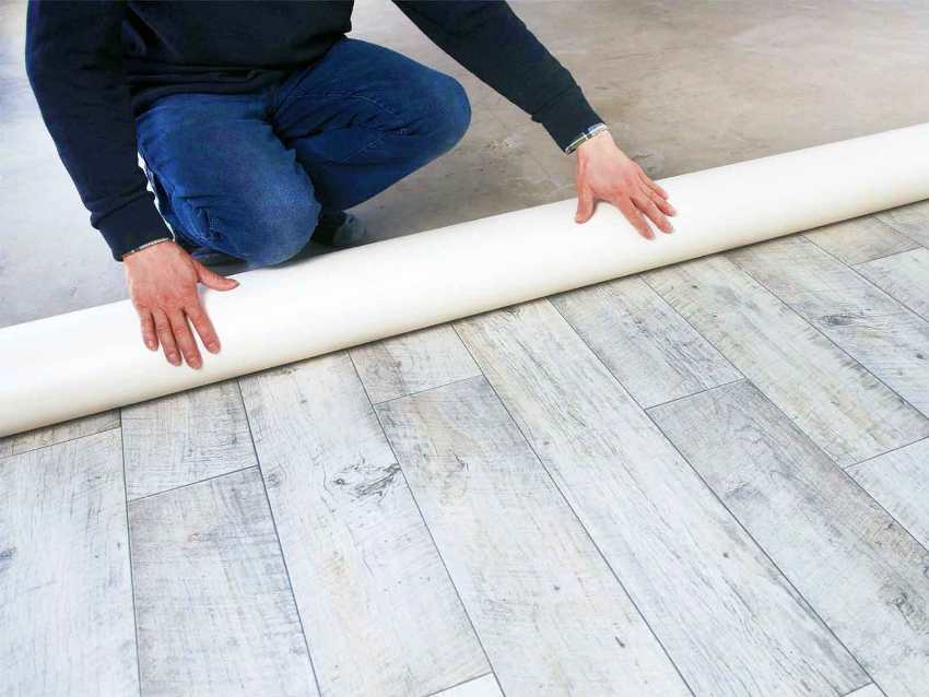 Пыль, мелкий, тем более крупный мусор нужно тщательно убрать, удалить следы жира и иных видов загрязнений. Перед выполнением отделки линолеумом без ворсистой подосновы на черновое основание устанавливается подложка из вспененного полихлорвинила.