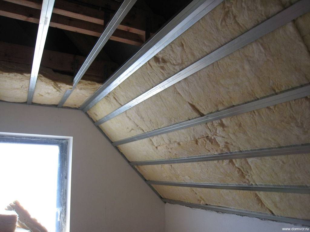 По выступающим балкам каркаса, крепится финишный слой потолка под отделку. Хорошо, если между утеплителем и этим слоем останется небольшой воздушный зазор.