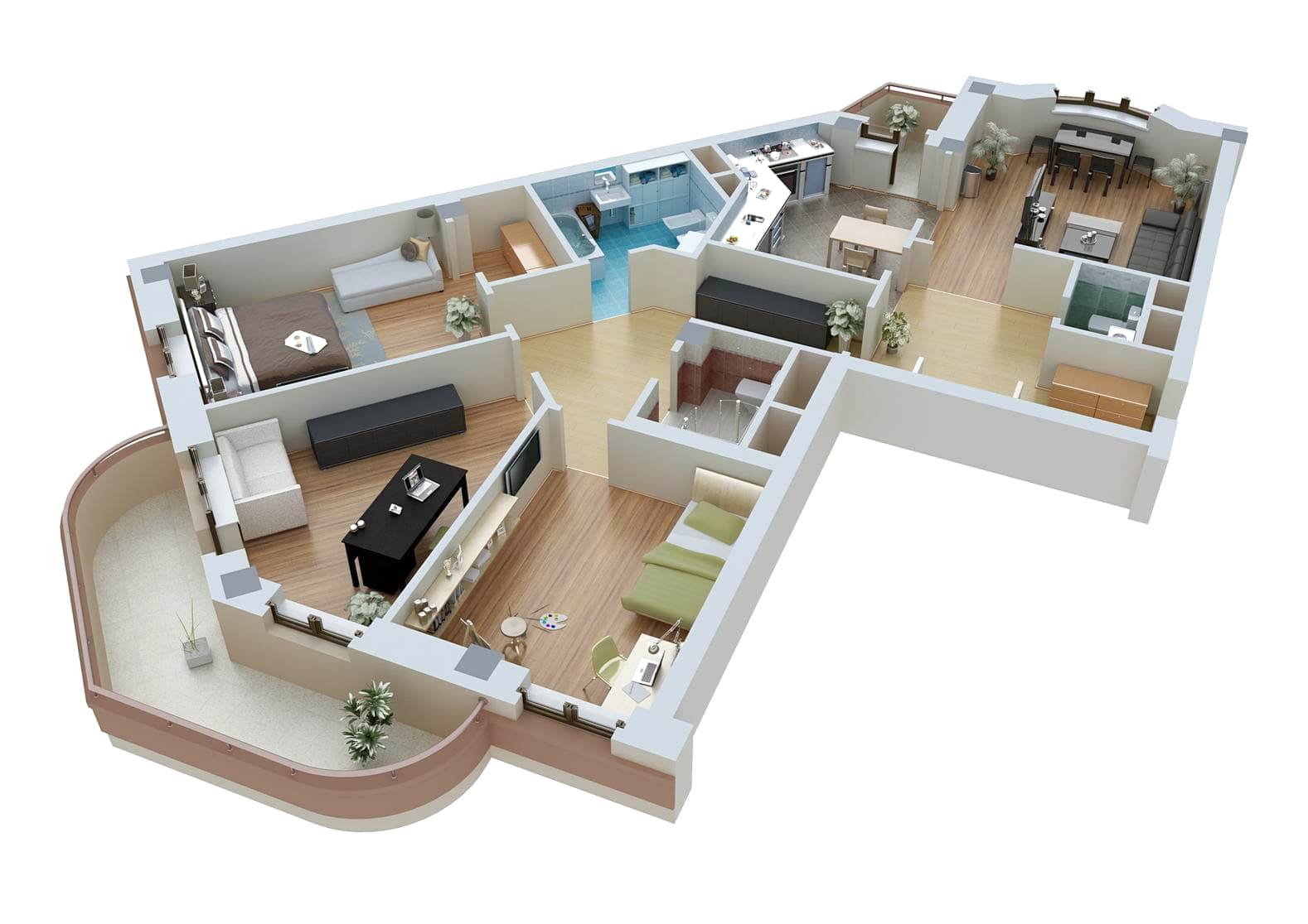 Если комната имеет нестандартные размеры – вычисление площади пола будет происходить немного дольше и сложнее. Существует множество причин, по которым комната может иметь нестандартные формы, например, ниша в спальне или встроенный шкаф. Стоит заметить, что способ найти площадь нестандартного пола все же можно. Для этого необходимо разбить помещение на небольшие геометрические фигуры, например, треугольники, квадраты, прямоугольники и т. д. Конечно, есть множество других способов, как рассчитать площадь пола, но с помощью такого способа – это сделать намного проще.