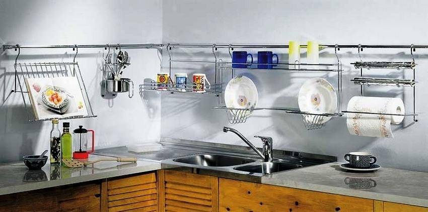 Рейлинги на фартуке кухни: удобно и функционально