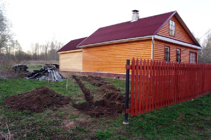 После того как выгребная яма размещена на участке, можно приступать к рытью траншеи нужной глубиной. В центральной части России это 2-2,5 метра, в северных районах – на метр больше, а южным регионам 1-1,5 метра. Траншею начинают копать от места приема сточных вод на верх, к дому.