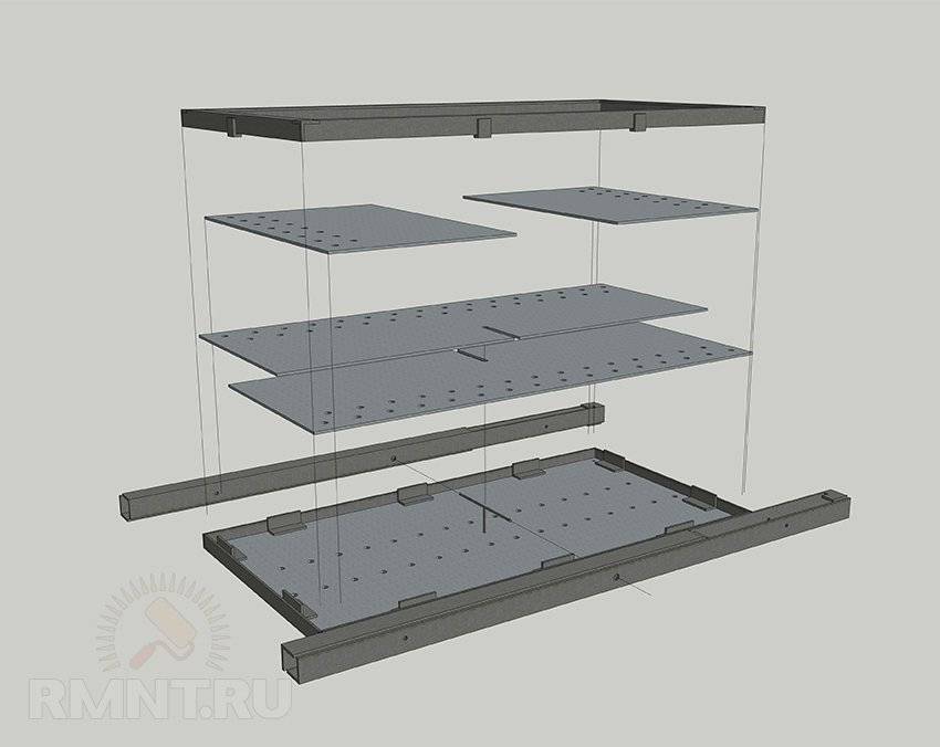 - в нижней части длинных стенок просверливаются отверстия диаметром не меньше 12 мм, для притока воздуха;