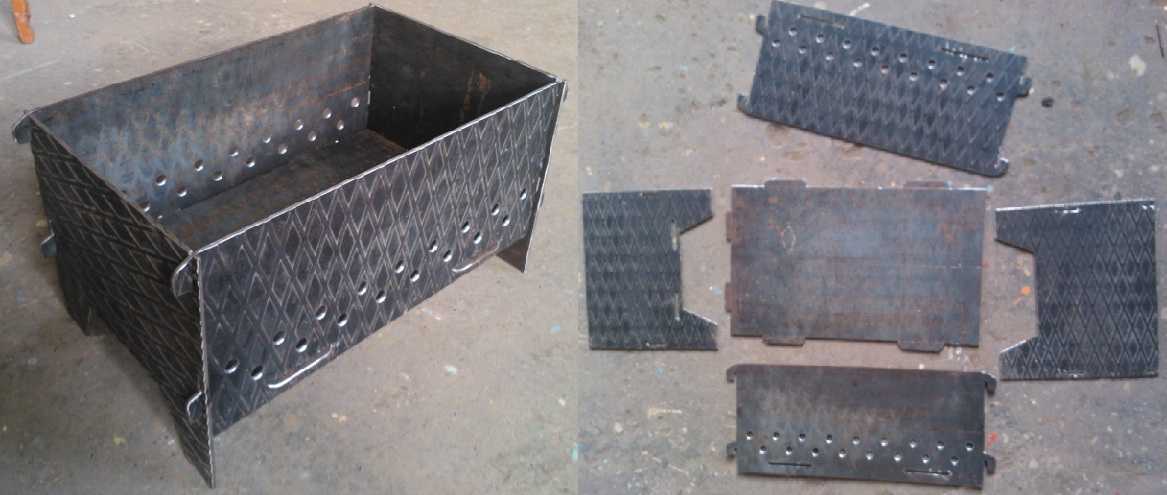 Чтобы мангал можно было легко и быстро собирать и разбирать, он должен состоять из минимального количества деталей (см. фото).