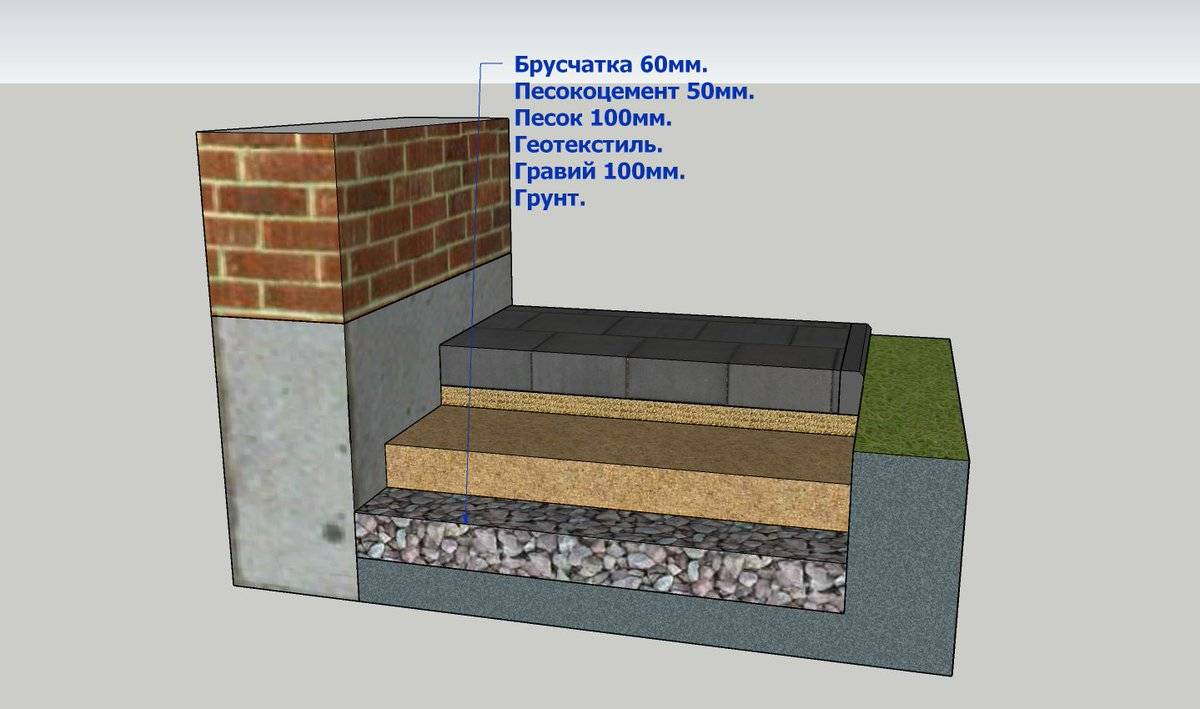 Укладка тротуарной плитки. На представленном рисунке можно ознакомиться со схемой правильной мягкой отмостки с тратуарной плиткой