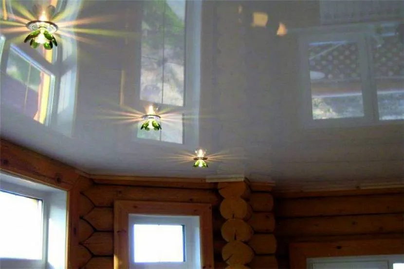 Если пленочные потолки установить в помещениях с высоким содержанием влаги: ванной или кухне, то пар будет скапливаться на поверхности и не проникать в основание древесины. Это позволит избавиться от недостатка накопления конденсата.