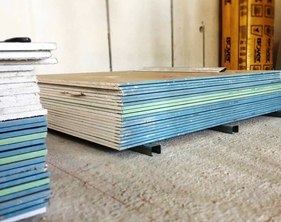 | Влагостойкий | ГКЛВ | Используется ипрегнированный картон, гидрофобные и антигрибковые добавки в материал сердечника | В обычных условиях, при повышенной влажности атмосферы, при размещении конструкций рядом с открытым огнем | Зеленый | Синий |
