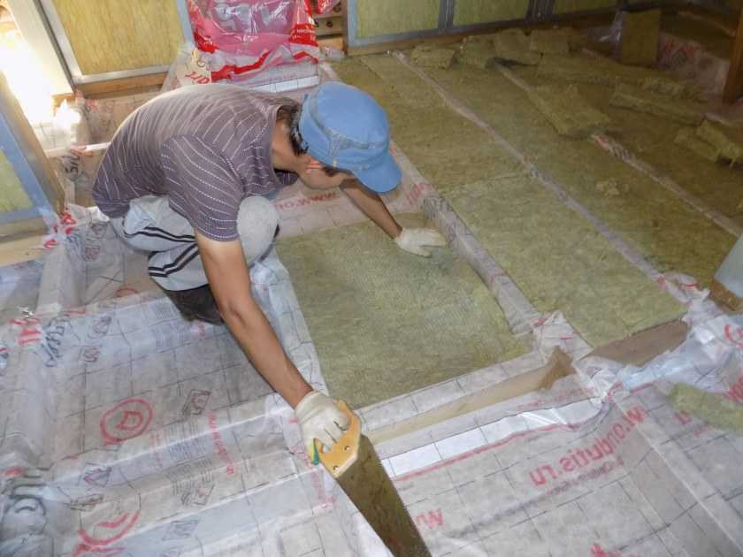 Непрочный пенопласт и минвата для этой цели не годятся. Плиты нужно выбирать фольгированные – они лучше отражают тепло. Сначала укладывается теплоизоляция, затем покрывается пленкой для гидроизоляции.