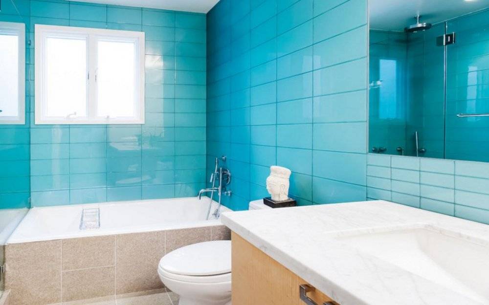3. В ванной комнате или совмещенном санузле нужна влагостойкая и гигиеничная отделка. Идеально подойдет стекло, но если вы поклонник керамики, возьмите глазурованную плитку с классом гидрофобности I или IIА. На пол обязательно уложите прочный керамогранит с максимальной шероховатостью поверхности.