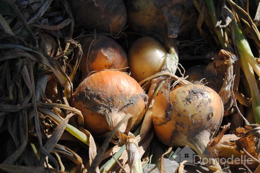 О готовности лука можно судить по увяданию ботвы. Оптимальные сроки уборки: последние числа июля – начало августа. В некоторых случаях перо к этому времени не всегда желтеет. В таком случае следует собрать луковицы и оставить их на дозревание разложенными в один слой вместе с пером.