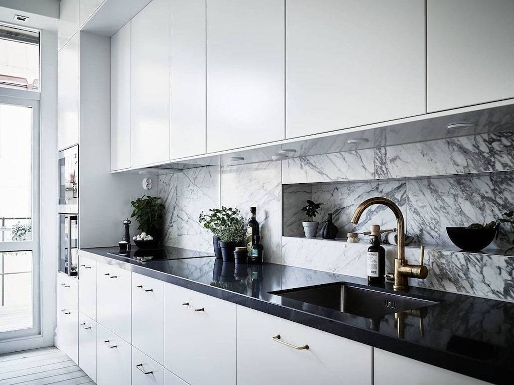 Мраморный фартук имеет право на существование только в том случае, если вам нужно подчеркнуть статусность жилища.