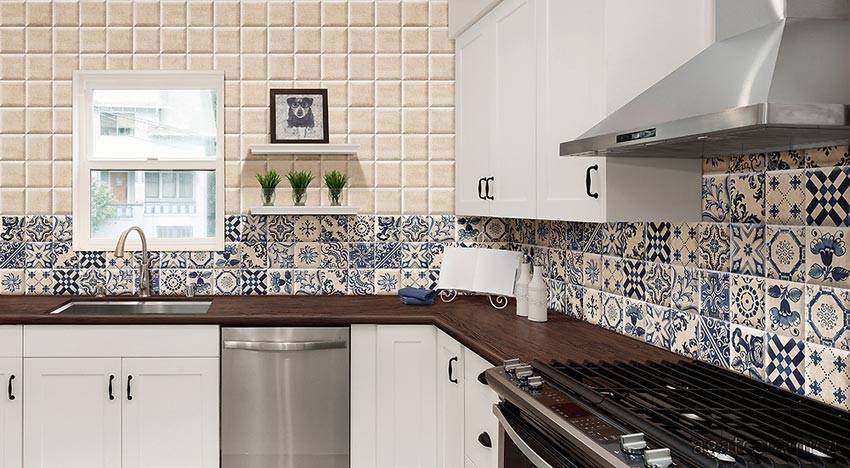 Благодаря широкой палитре цветов, дизайна, а также возможности фотопечати на плитке, можно подобрать фартук на любой вкус.
