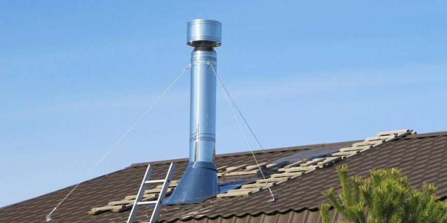 Установка трубы для дымохода из нержавейки