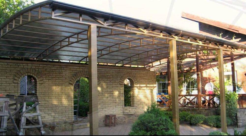 Мы рассмотрели два материала, которые являются самыми популярными при строительстве навесов во дворе. Это сотовый поликарбонат и металлопрофиль.