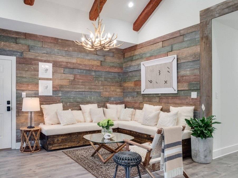 - Поглощают яркость и стены с шероховатой структурой, поэтому в деревянных домах люстра может светить более тускло.