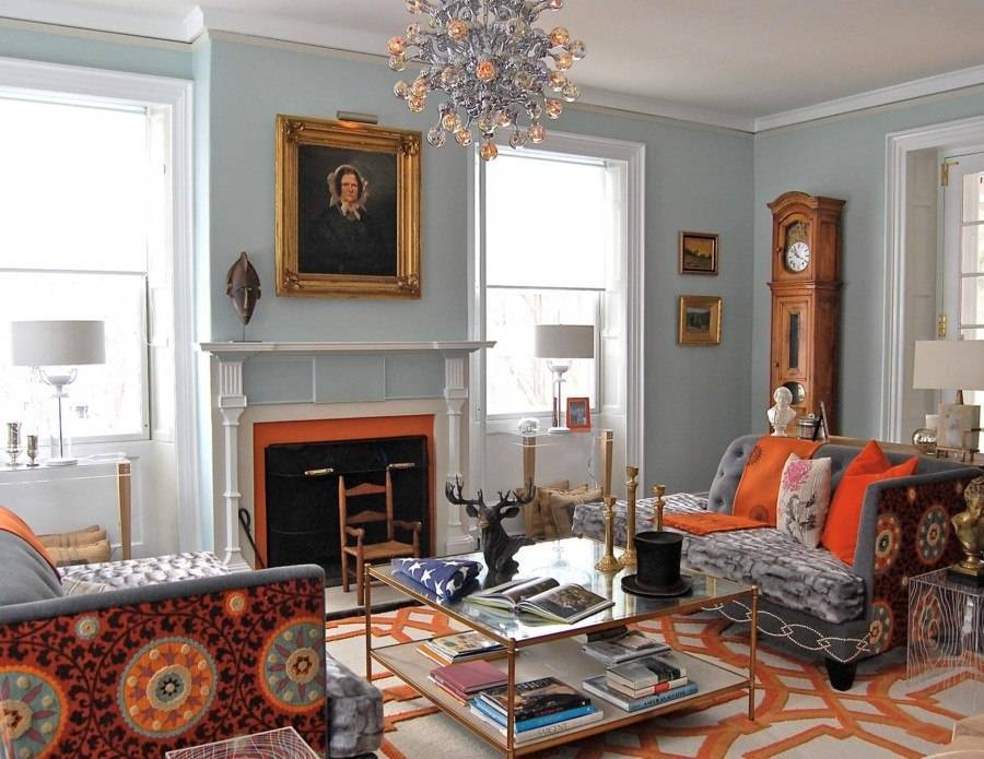Эклектика. Выбор центрального осветительного прибора ограничивается только вашей фантазией и общей стилевой направленностью эклектичной гостиной. Выбор может пасть как на классическую модель лаконичной формы, так и на эффектную люстру в стиле ретро с коваными завитушками, декоративными стеклянными вставками и лампочками-свечами.