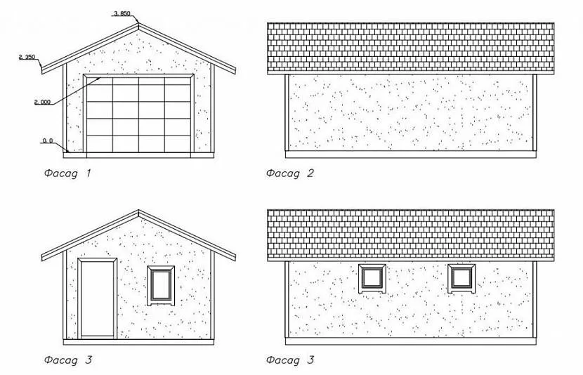 Ознакомившись с нюансами профессиональных проектов и выбрав интересные моменты, приступают к накидыванию идей на бумаге. Для начала определяются параметры гаража и наносятся на схему. Стандартные размеры: