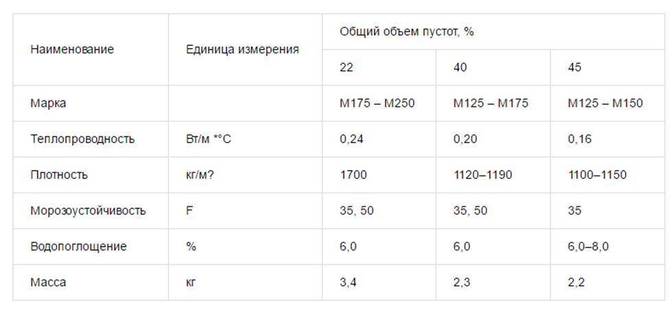 | Кирпич пустотелый строительный, пустотность 42–45%. |