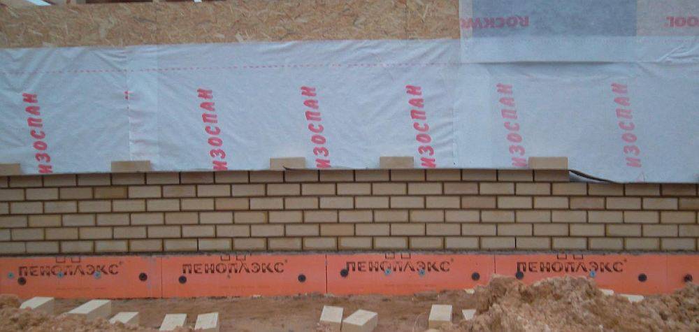 Укладку кирпича начинают после того, как фундамент окончательно застынет, то есть через 2-3 недели. В кирпичной кладке делают вентиляционные отверстия, чтобы обеспечить «продув». Для этого примерно каждые три кирпича вставляют специальные вентиляционные коробочки для циркуляции воздуха. Иногда просто не замазывают швы, закрывая отверстие стеклосеткой, чтобы грызуны или насекомые не проникали внутрь.