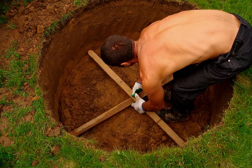 - Выкапывается небольшая скважина, глубиной не более 1 м;