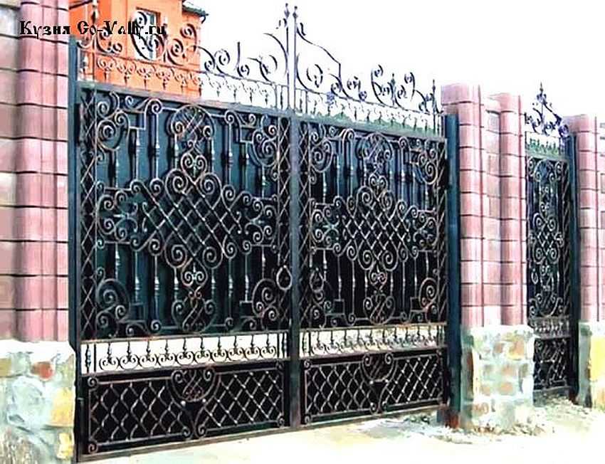 При изготовлении ворот или калитки используются элементы с нестандартной формой. При большом количестве секций их соединяют хомутами или закладками. Иногда крепление элементов происходит при помощи сварки. В интернете найдется множество фото с разными рисунками. Профессиональные мастера подскажут, как лучше сочетать орнамент.