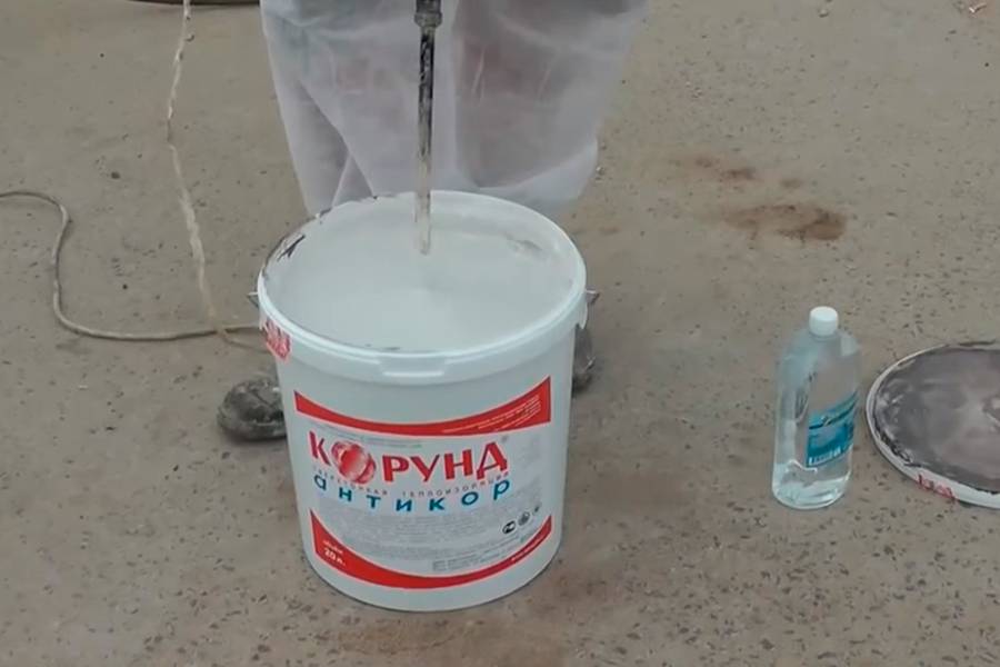 Краску перемешивают и подготавливают к нанесению (иногда приходится добавлять воду или растворитель, добиваясь нормативной вязкости).