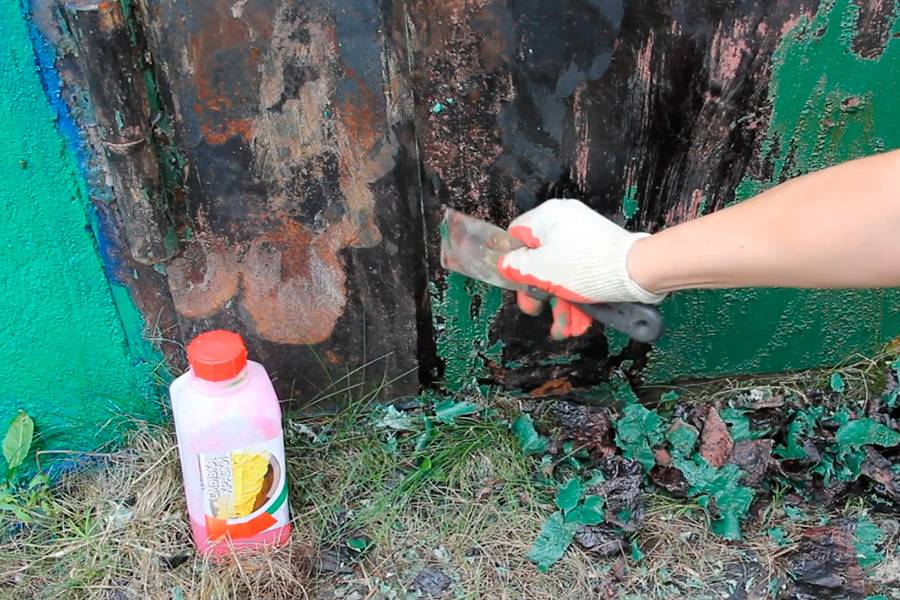 Поверхность очищают, удаляя старую краску, отслоившиеся или осыпающиеся участки.