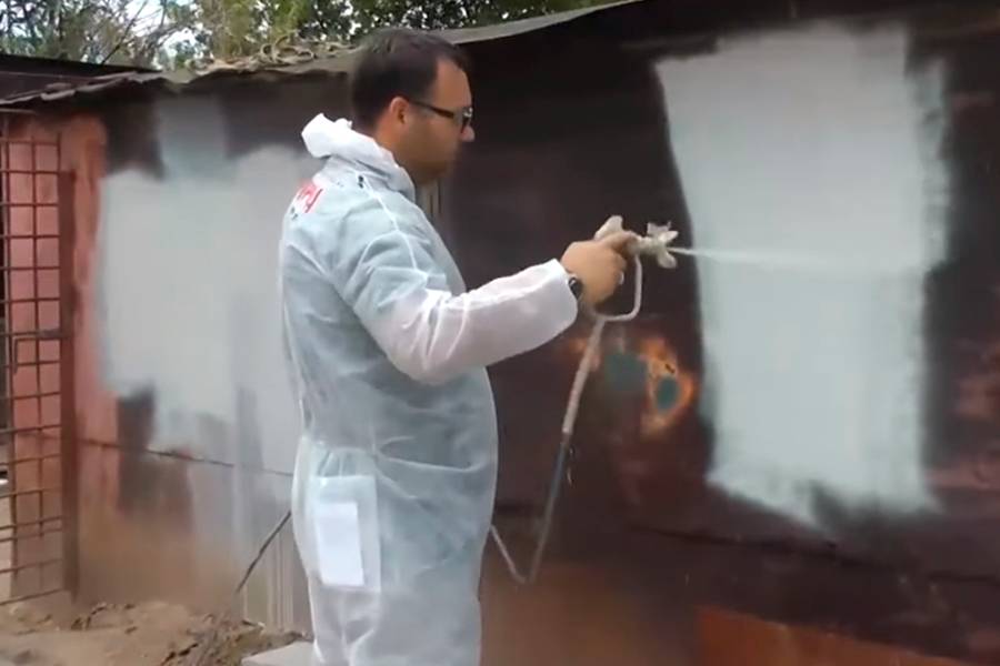 В сети есть масса утверждений о максимальной эффективности распыления. Однако, этот способ отличается лишь производительностью. С точки зрения экономии он наиболее затратен, так как требует приведения материала к рабочей вязкости. Краску приходится разбавлять водой или растворителем, что требует дополнительных расходов. При нанесении большое количество материала уходит в туман или попадает помимо окрашиваемых поверхностей.