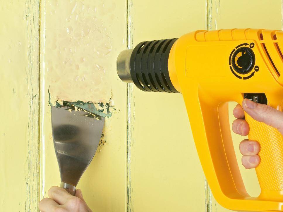 Начинают всегда с очищения стен. Их моют, если проблема только в накопившихся загрязнениях. Их зачищают при помощи шпателя, скребка, дрели со специальными насадками, строительного фена или химических составов, предназначенных для снятия старой краски (смывок), если покрытие находится в плачевном состоянии. В этом же случае требуется и выравнивание поверхности. На данном этапе используются шпатлёвочные стартовые и финишные смеси, наждачная бумага.