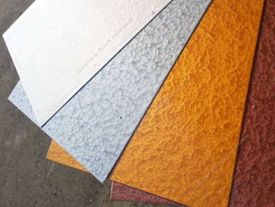 При выборе состава нужно учитывать и его внешний вид. Покрытие может быть матовым, полуматовым, глянцевым, молотковым. Молотковая и матовая краска по металлу скрывает некоторые недостатки поверхности, тогда как глянцевая требует тщательного выравнивания основания. Оттенки выпускают самые разнообразные, кроме этого, всегда можно приобрести колер и получить любые желаемые цвета.