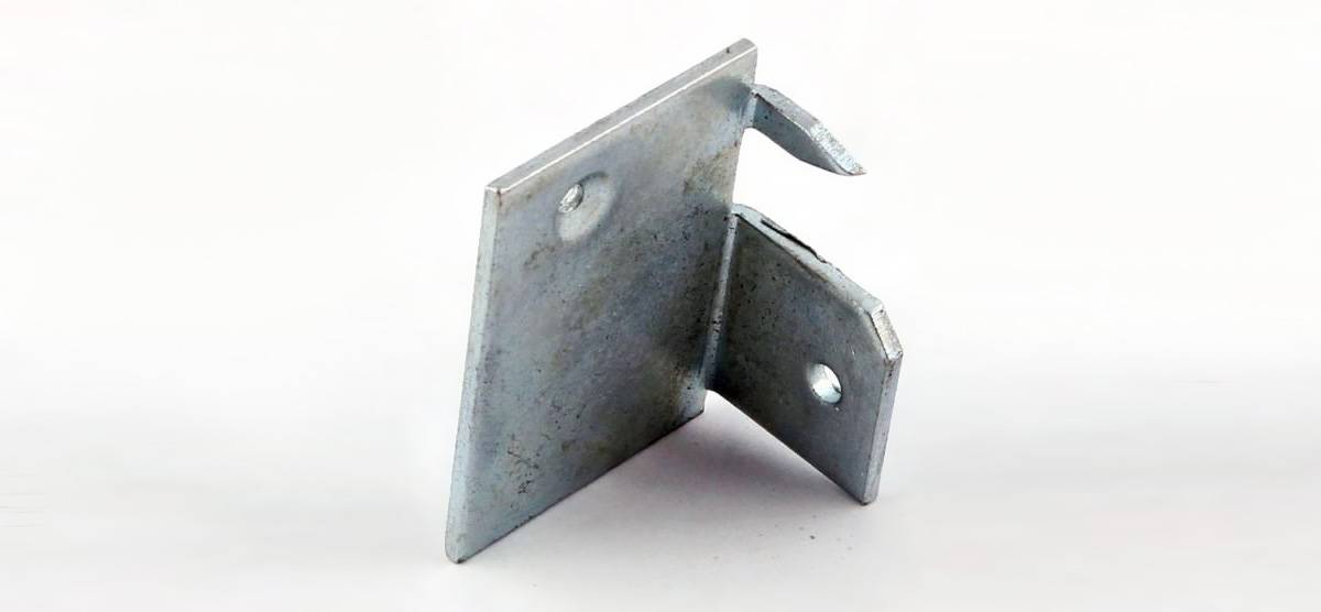 Данный крепеж предназначен для прямоугольного профиля, не имеющего пазов. Фурнитура представляет собой пластинки, имеющие 90-градусный изгиб, на пластинке имеются монтировочные отверстия и фиксирующий шип.