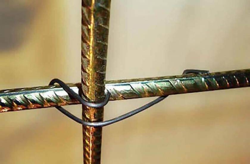 Для фундамента вязку арматурного каркаса осуществляют с помощью проволоки диаметром от 1,2 мм до 1,4 мм. Данное обстоятельство связано с тем, что проволока толщиной менее 1,2 мм может оказаться довольно слабой на разрыв при механическом воздействии, а если взять проволоку толще 1,4 мм, то вязка арматуры может оказаться весьма проблематичным занятием из-за низкой гибкости.