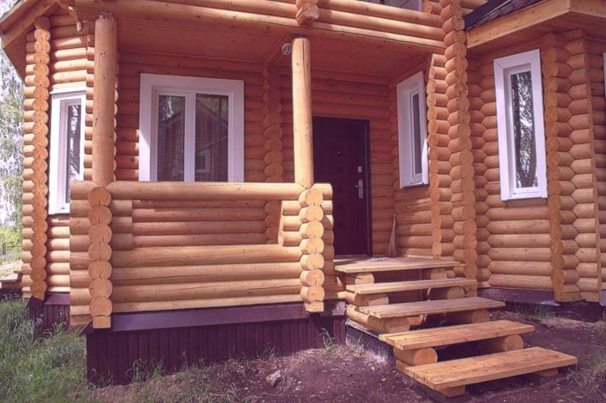 Надежная связка фундамента веранды и дома из дерева минимизирует деформационный шов между ними
