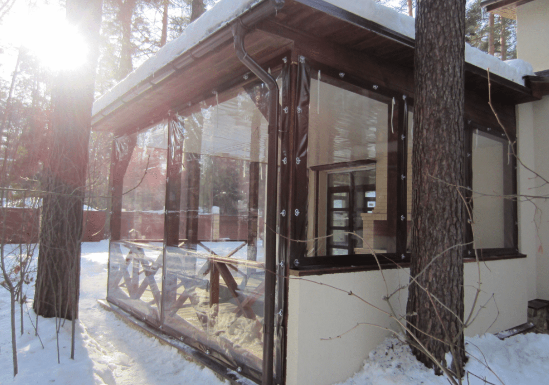 Зачастую подобные оконные системы применяются для того, чтобы как бы законсервировать беседку, веранду или же террасу на зимний период, защищая их от непогоды, пронизывающего ветра и атмосферных осадков. Причем бывает, что защитными мягкими окнами из тента затягивают только часть беседки или веранды, оставляя часть открытой, к примеру, на летних площадках в ресторанах и кафе, на базах отдыха, да и в частных владениях.